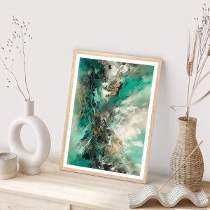 Plakat i ramme af lyst egetræ - Smaragdsort byld - 70x100 cm