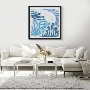 Plakat i sort ramme - Blå bregner - 100x70 cm