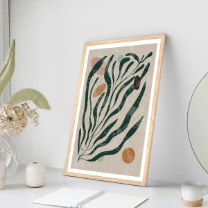 Plakat i ramme af lyst egetræ - Blandt det grønne - 40x50 cm