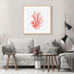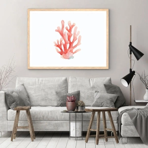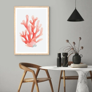Plakat i ramme af lyst egetræ - Farven koral - 61x91 cm