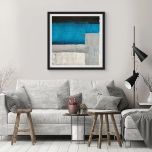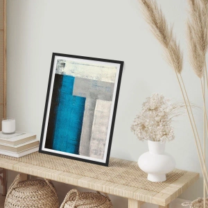 Plakat i sort ramme - Poetisk komposition af grå og blå - 70x100 cm