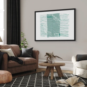 Plakat i sort ramme - En minimalistisk komposition af linjer og teksturer i grønne nuancer. - 50x70cm - Marin abstraktion - Moderne vægdekoration til stue og soveværelse ARTTOR