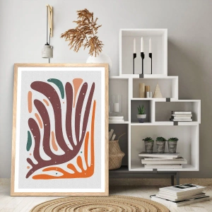 Plakat i ramme af lyst egetræ - Strålende organisk komposition - 91x61 cm