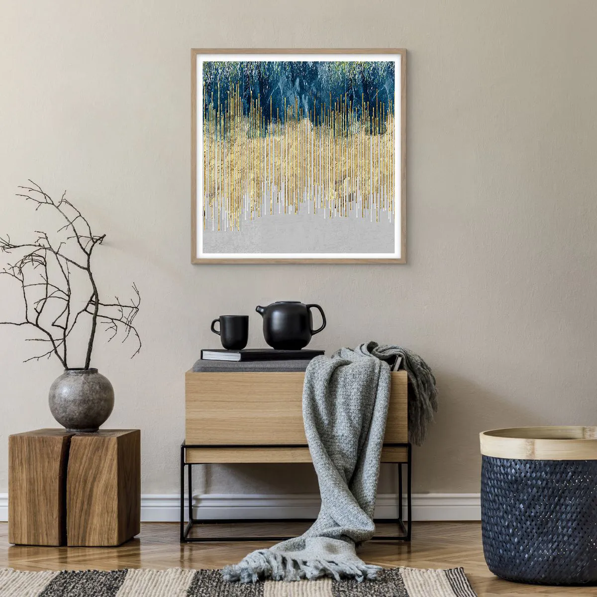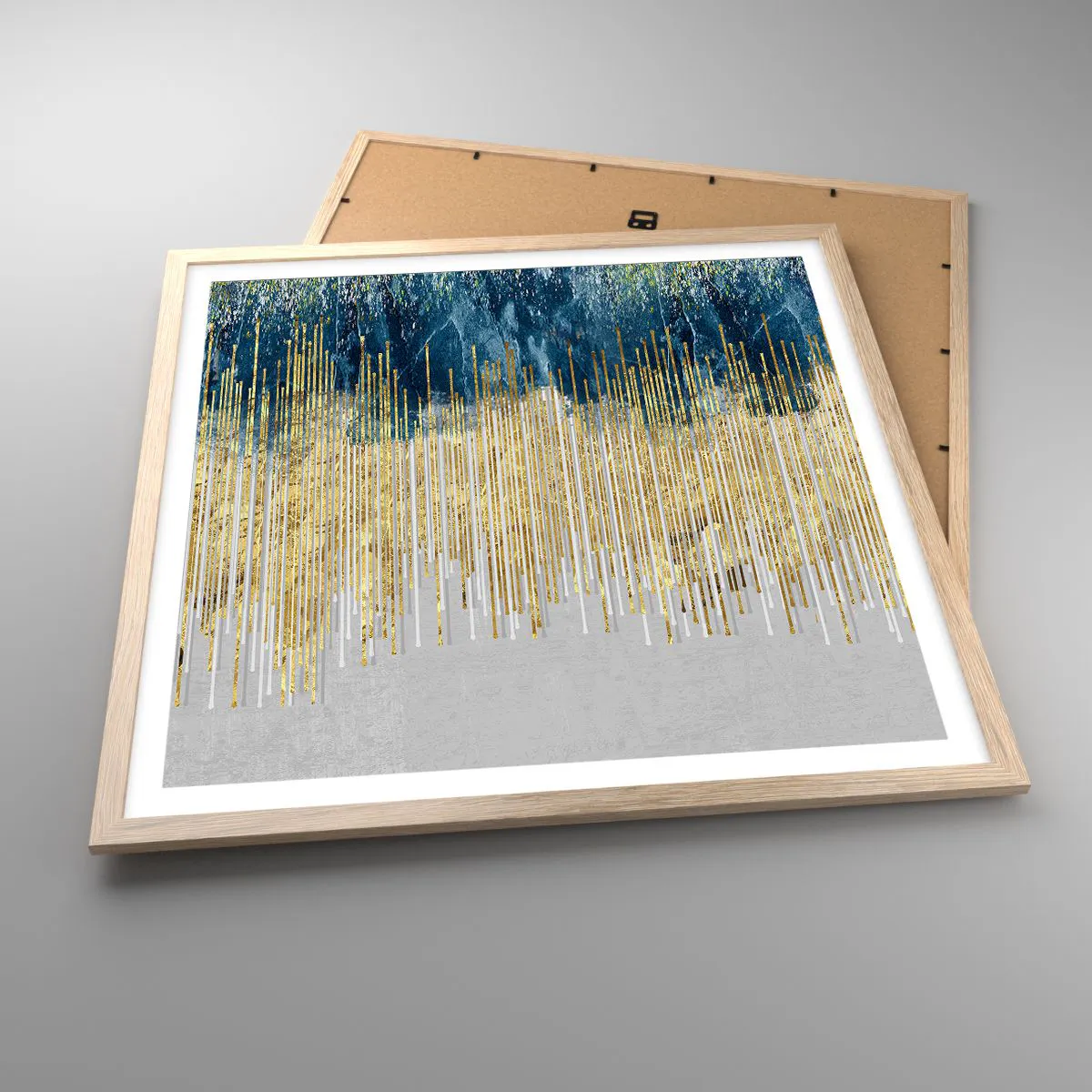 Plakat i ramme af lyst egetræ - Forgyldt grænse - 60x60 cm