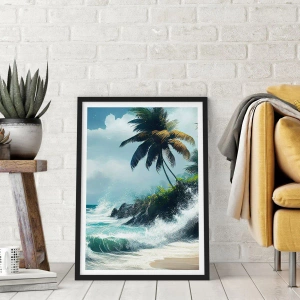 Plakat i sort ramme - På en tropisk strand - 50x50 cm