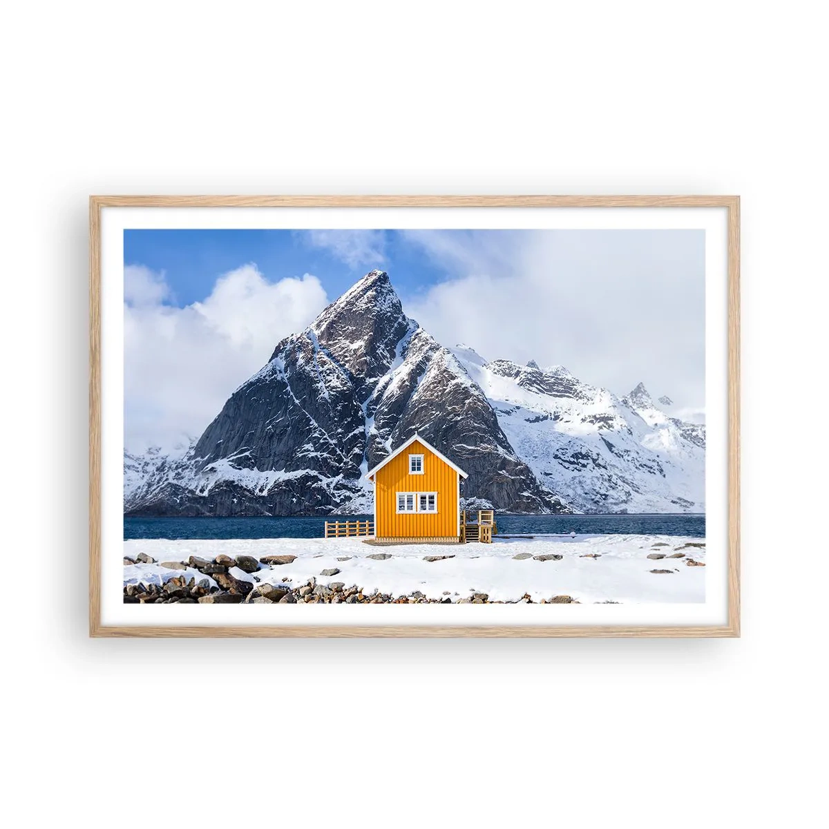 Plakat i ramme af lyst egetræ - Skandinavisk ferie - 91x61 cm