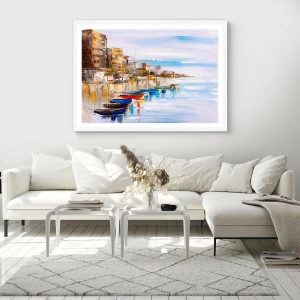 Plakat i hvid ramme - Flerfarvet urban havn - 50x70 cm