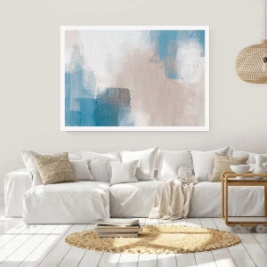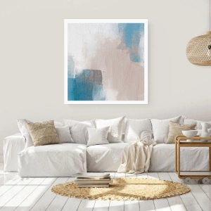 Plakat - Lyserød abstraktion bag et slør af blåt - 40x40 cm