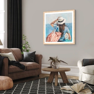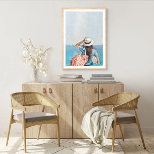 Plakat i ramme af lyst egetræ - Velkommen på ferie - 100x70 cm