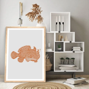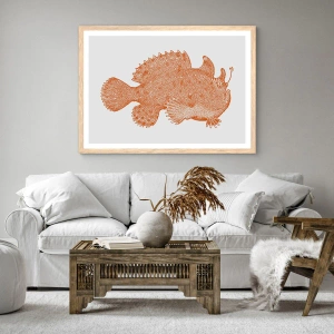 Plakat i ramme af lyst egetræ - Og dog en fisk - 70x50 cm