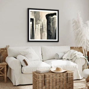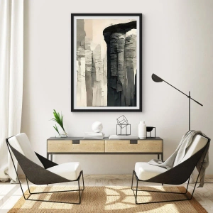 Plakat i sort ramme - Monumentale klippeformationer i grå nuancer - 50x70cm - Antikkens majestæt - Moderne vægdekoration til stue og soveværelse ARTTOR