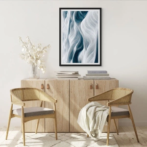 Plakat i sort ramme - Abstrakte bølger i nuancer af hvid og marineblå - 50x70cm - Hvide og blå bølger - Moderne vægdekoration til stue og soveværelse ARTTOR