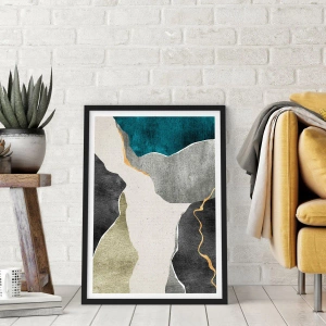 Plakat i sort ramme - Mosaikkomposition med en streng af guld - 50x50 cm