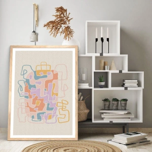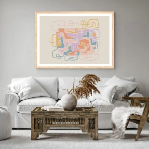 Plakat i ramme af lyst egetræ - Labyrint - et glædeligt eventyr - 40x30 cm