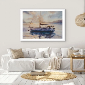 Plakat i hvid ramme - Aften i bugten - 91x61 cm