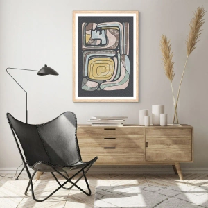 Plakat i ramme af lyst egetræ - Abstraktion i en præcolumbiansk ånd - 50x70 cm