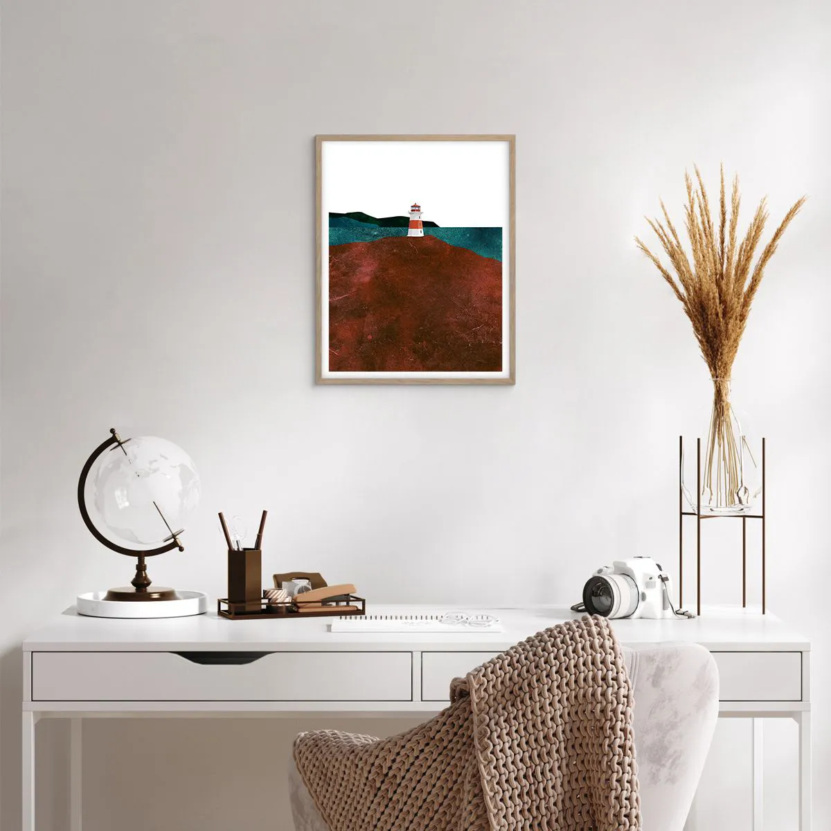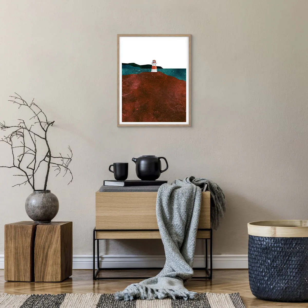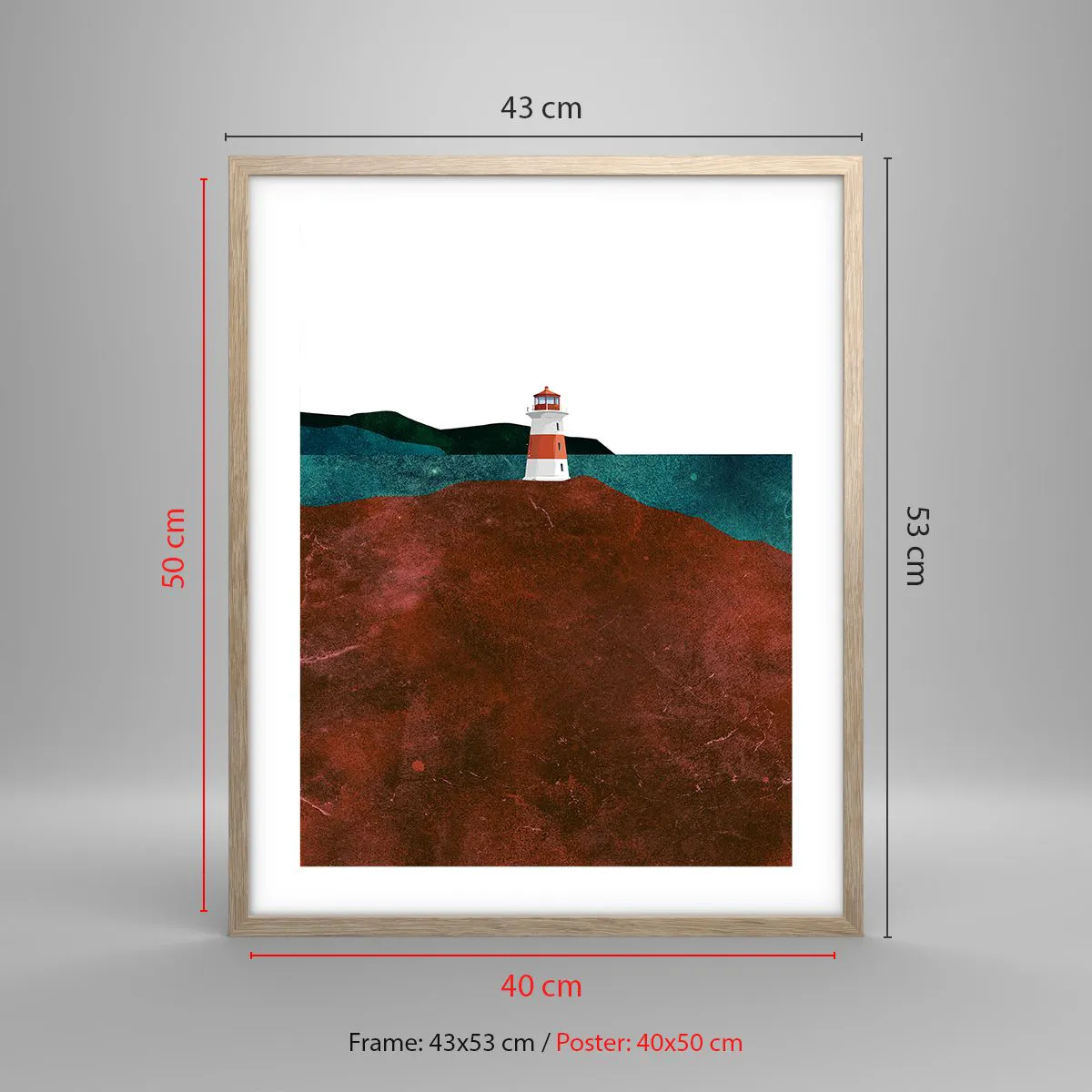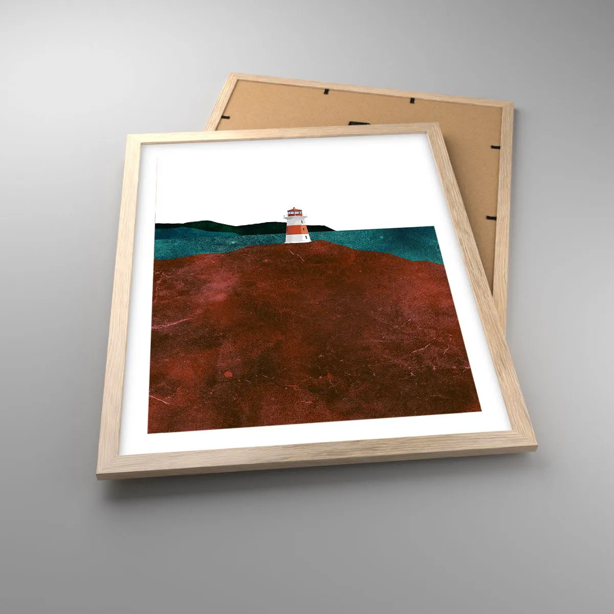 Plakat i ramme af lyst egetræ - Med blikket rettet mod havet - 40x50 cm