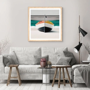 Plakat i ramme af lyst egetræ - På sin plads - 50x70 cm