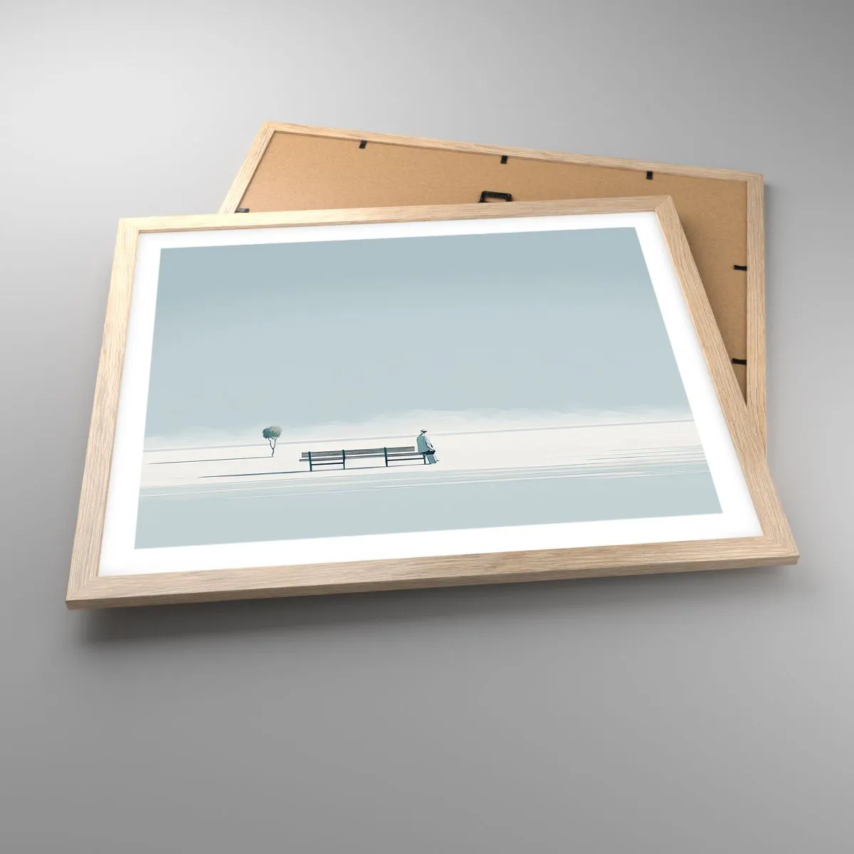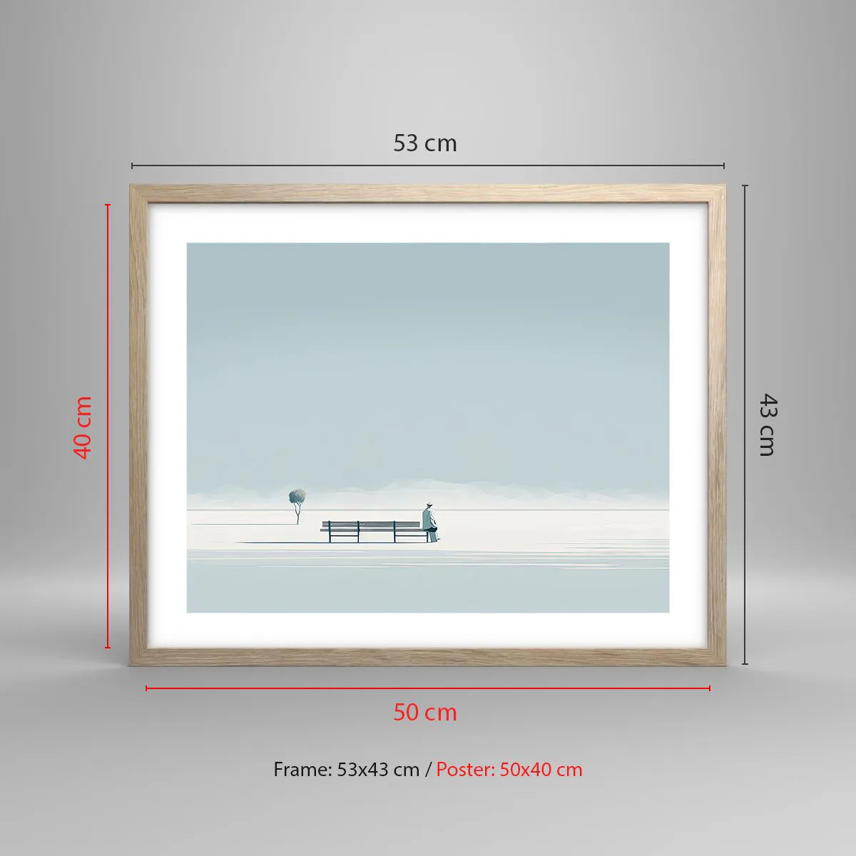 Plakat i ramme af lyst egetræ - Ja, jeg venter. - 50x40 cm