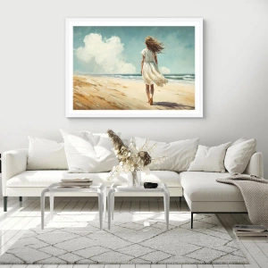 • pige, strand, gåtur, Mennesker, Nautical, Pastel, Landskaber, Rejser, Kunst, Til kontoret, Til arbejdsværelset, Til spisestuen, Til badeværelset, Til hallen, Til stuen, Til soveværelset, Hvid, brun, blå, grå, Vandret
