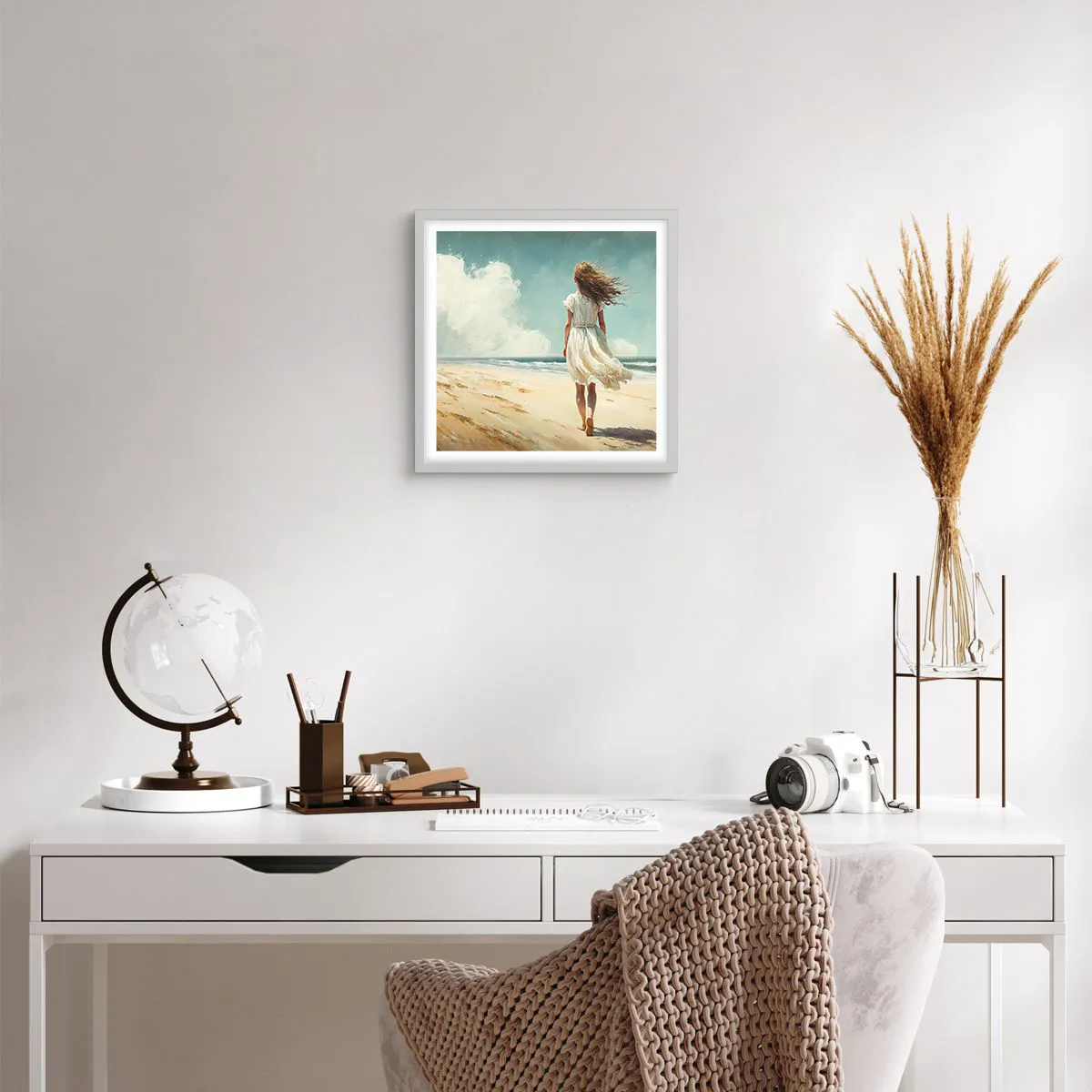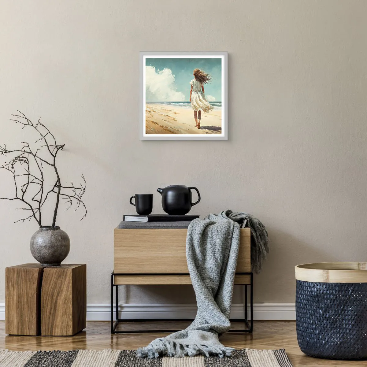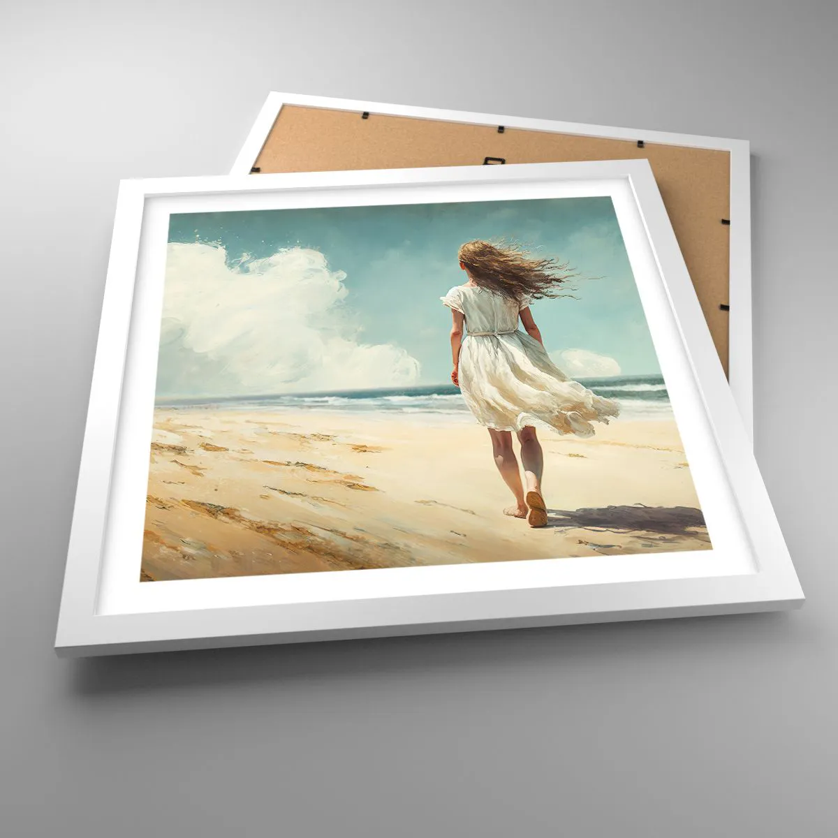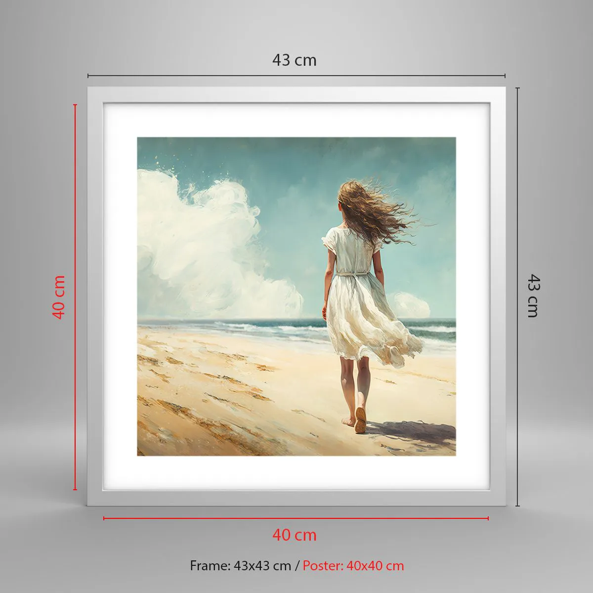 Plakat i hvid ramme - At møde solen og vinden - 40x40 cm