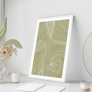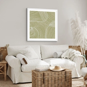 Plakat i hvid ramme - Indviklet abstraktion i hvidt - 100x70 cm