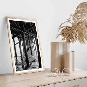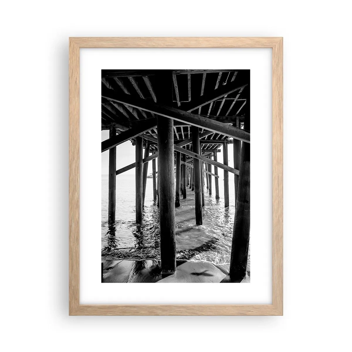 Plakat i ramme af lyst egetræ - Strandskjul - 30x40 cm