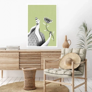Plakat - Modernistisk portræt - holder en blomst - 70x100 cm