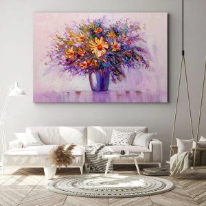 Lærredet er spændt op over rammen. Siderne og kanterne trykkes for at danne en fortsættelse af billedet. Maleriet er klar til at blive hængt op på væggen. Hvert produkt har en bøjle, der er fastgjort til rammen, og et samlesæt (skrue + dyvel).