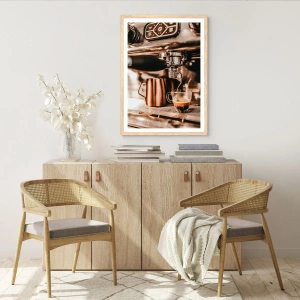 Plakat i ramme af lyst egetræ - Kaffens glød - 70x100 cm
