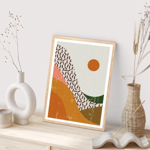 Plakat i ramme af lyst egetræ - Solrig abstraktion - 70x100 cm