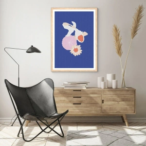 Plakat i ramme af lyst egetræ - Sammensætning af blomster og knopper - 70x100 cm