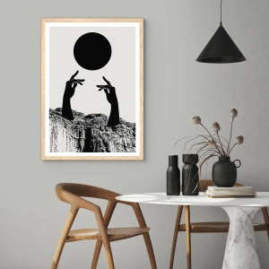 Plakat i ramme af lyst egetræ - Surrealistisk komposition: solen og resten - 70x100 cm