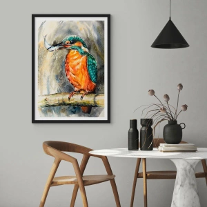 Akvarelstilen indfanger perfekt dyrelivets skønhed. Vandsangeren, der fanger en fisk, bliver et symbol på balance i naturen, og dens dynamiske form kombineret med naturen repræsenterer harmoni.