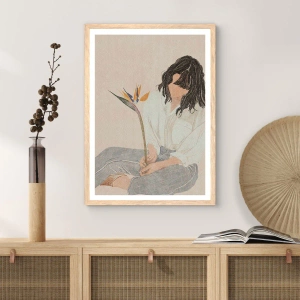 Plakat i ramme af lyst egetræ - Portræt med en eksotisk blomst - 40x50 cm