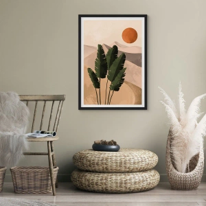 Plakat i sort ramme - Planter i ørkenomgivelser med solnedgang, abstrakt landskab - 50x70cm - Livets triumf - Moderne vægdekoration til stue og soveværelse ARTTOR