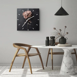 Vægur, Uret - Lyserød hortensiablomst på en sort baggrund - 30x30cm - Et virkelig romantisk tegn - Moderne vægdekoration til stue, køkken og soveværelse ARTTOR