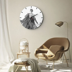 Uret er fremstillet af 4 mm tykt sikkerhedsglas. Urets fremstillingsteknologi er i overensstemmelse med sikkerhedsklasse 2B2 i henhold til EN 12600:2004, hvilket garanterer slagfasthed. Uret på glas er klar til at blive hængt op - det har et metalophæng fastgjort på bagsiden af uret og en skumafstandsholder til at regulere urets lige afstand fra væggen. Uret har en lydløs mekanisme, der drives af et 1,5 V - AA-batteri (batteri medfølger ikke).