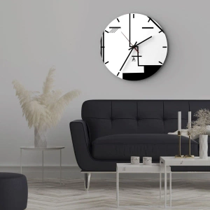 Uret er fremstillet af 4 mm tykt sikkerhedsglas. Urets fremstillingsteknologi er i overensstemmelse med sikkerhedsklasse 2B2 i henhold til EN 12600:2004, hvilket garanterer slagfasthed. Uret på glas er klar til at blive hængt op - det har et metalophæng fastgjort på bagsiden af uret og en skumafstandsholder til at regulere urets lige afstand fra væggen. Uret har en lydløs mekanisme, der drives af et 1,5 V - AA-batteri (batteri medfølger ikke).