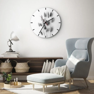 - Et ur med en diskret grafik af fluffy græsser i sort-hvid mod en lys baggrund. En komposition fuld af delikatesse og naturlig skønhed, perfekt til interiører med en rolig, minimalistisk fornemmelse.