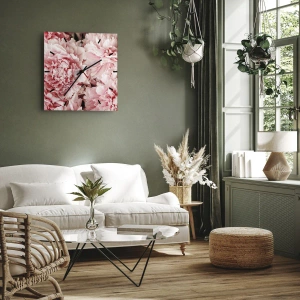 Vægur, Uret - Nærbillede af frodige lyserøde pæoner i fuldt flor - 30x30cm - Lyserød drøm - Moderne vægdekoration til stue, køkken og soveværelse ARTTOR