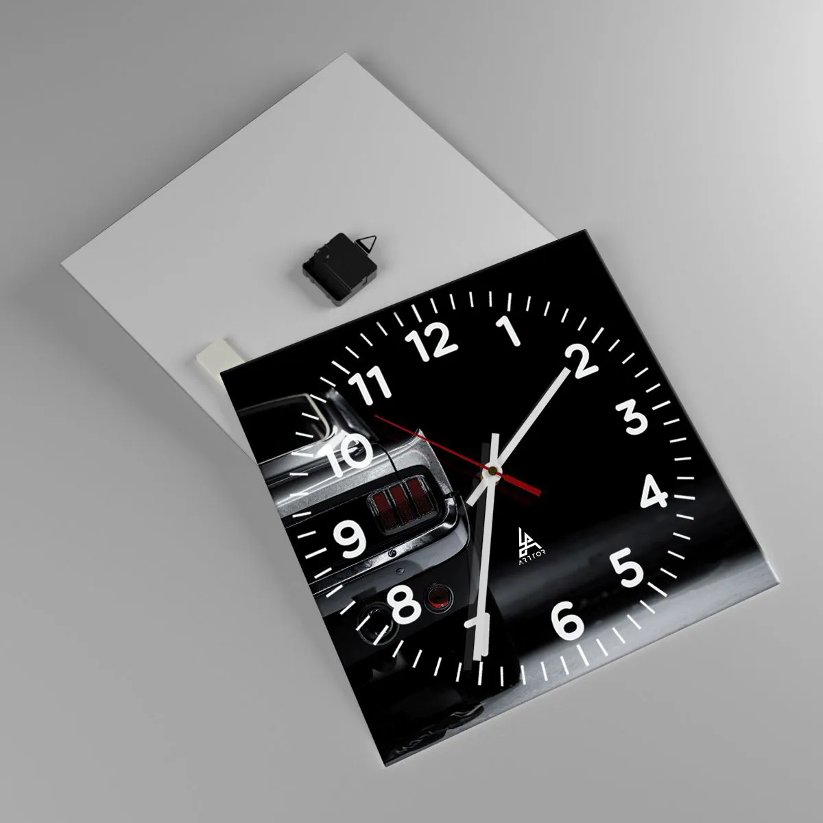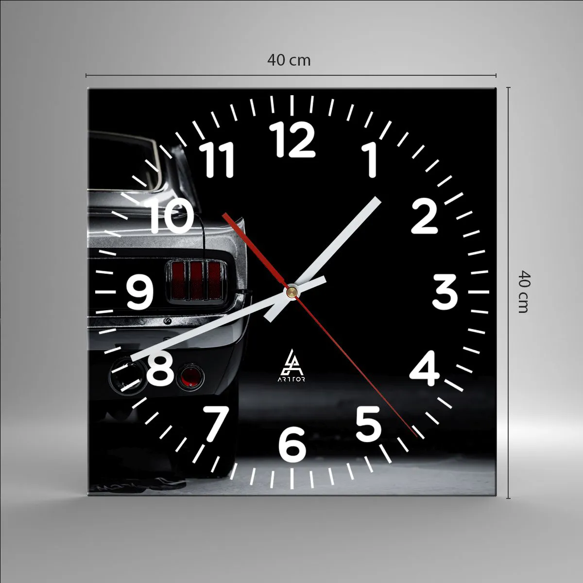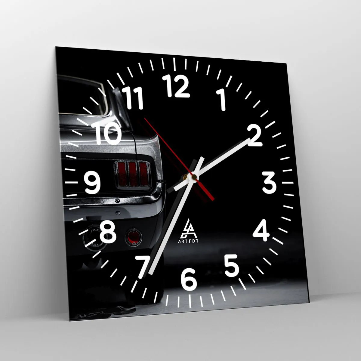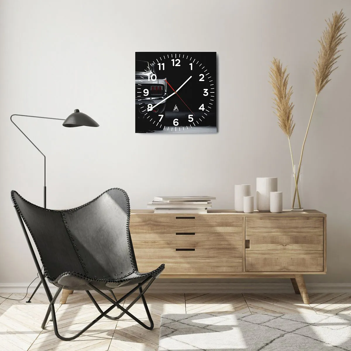 Uret på glas er klar til at hænge på væggen, det er udstyret med en monteret metalophæng for nem montering