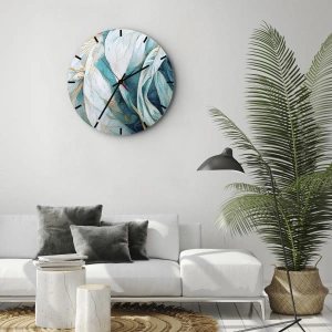 Vægur, Uret - Blå abstraktion med et guldmotiv - 30x30 cm