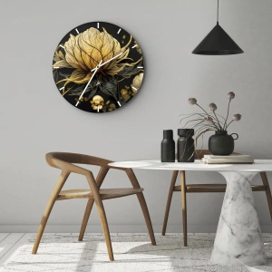 Vægur, Uret - Guld og sort blomst på en mørk baggrund - 30x30cm - Subtil skrøbelighed - Moderne vægdekoration til stue, køkken og soveværelse ARTTOR
