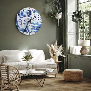 Vægur, Uret - Abstrakte blå mønstre på en hvid baggrund - 30x30cm - Tilbage til rødderne - Moderne vægdekoration til stue, køkken og soveværelse ARTTOR