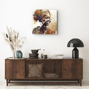 Vægur - Afrikansk dronning - Smilende kvinde i turban mod en baggrund af akvarelstænk