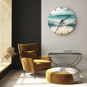 Uret er fremstillet af 4 mm tykt sikkerhedsglas. Urets fremstillingsteknologi er i overensstemmelse med sikkerhedsklasse 2B2 i henhold til EN 12600:2004, hvilket garanterer slagfasthed. Uret på glas er klar til at blive hængt op - det har et metalophæng fastgjort på bagsiden af uret og en skumafstandsholder til at regulere urets lige afstand fra væggen. Uret har en lydløs mekanisme, der drives af et 1,5 V - AA-batteri (batteri medfølger ikke).