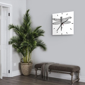 Uret på glas er klar til at hænge på væggen, det er udstyret med en monteret metalophæng for nem montering