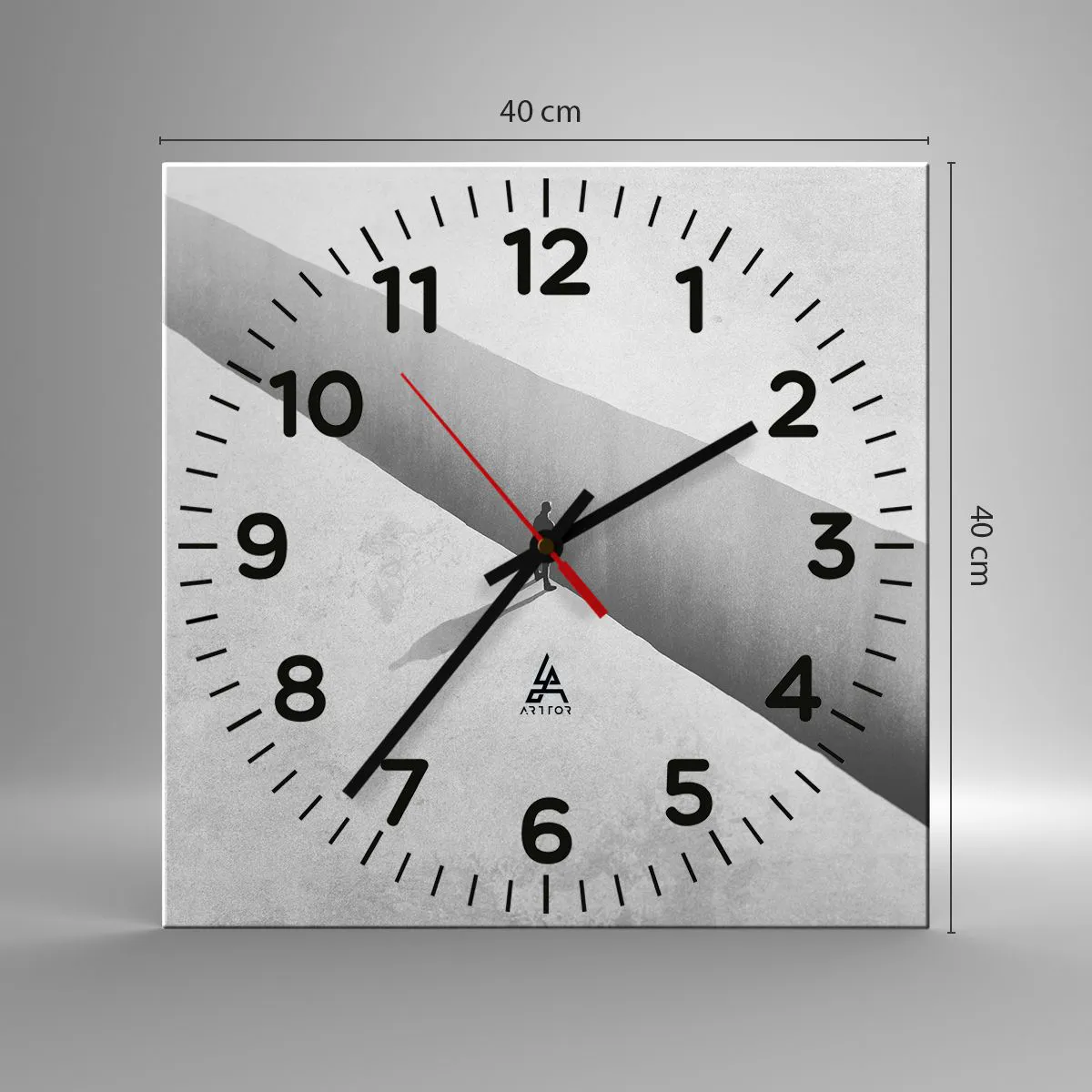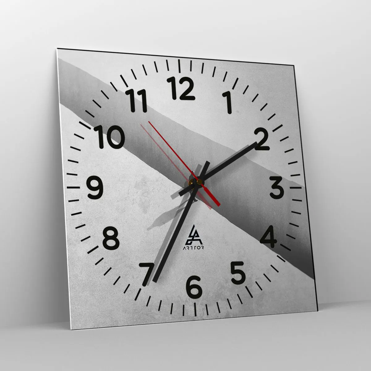Uret er fremstillet af 4 mm tykt sikkerhedsglas. Urets fremstillingsteknologi er i overensstemmelse med sikkerhedsklasse 2B2 i henhold til EN 12600:2004, hvilket garanterer slagfasthed. Uret på glas er klar til at blive hængt op - det har et metalophæng fastgjort på bagsiden af uret og en skumafstandsholder til at regulere urets lige afstand fra væggen. Uret har en lydløs mekanisme, der drives af et 1,5 V - AA-batteri (batteri medfølger ikke).