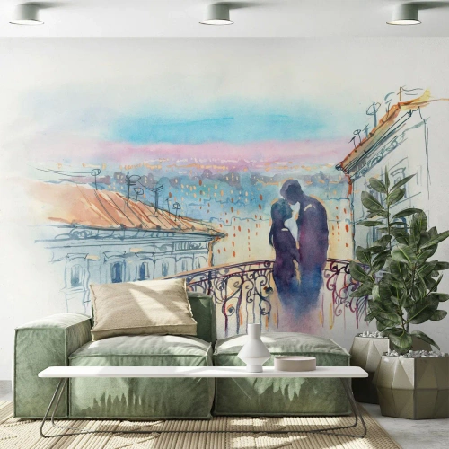 Fototapet Premium Sand - Parisiske elskere - Arkitektur, By, Et par kærester - 450x315 cm